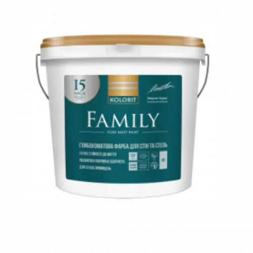 Kolorit Family (Колорит Преміум 3) - матова стійка до миття латексна фарба з підвищеною покривністю на акрилатній основі для внутрішніх робіт.