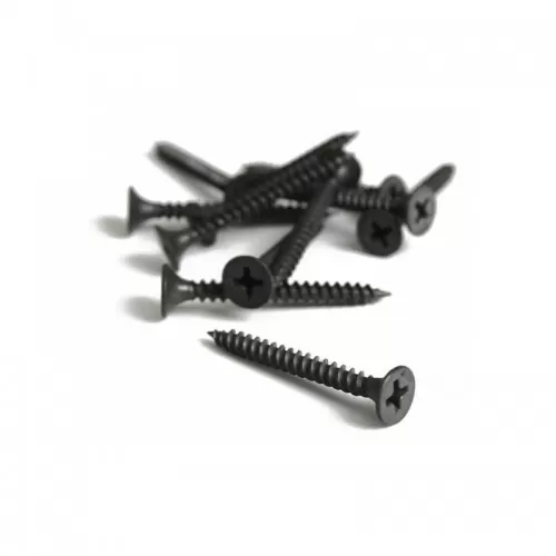 Виготовлений саморіз із низьковуглецевої сталі, покритий чорним фосфатом. На кінці має гострий наконечник, завдяки чому немає необхідності в попередньому свердлінні отворів. Завдяки будові головки саморіз добре утоплюється у поверхню, надійно фіксуючи її.