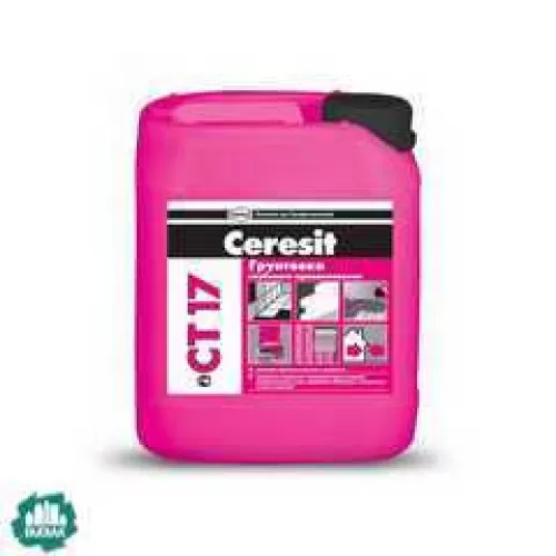 Грунтовка Ceresit CT 17 призначена для підготовки поверхні перед пристроєм керамічних облицювань, укладанням вирівнюючих мас для підлоги, кріпленням теплоізоляційних плит, фарбуванням і т.д. з метою зміцнення і зниження всмоктуючої здатності підстави.