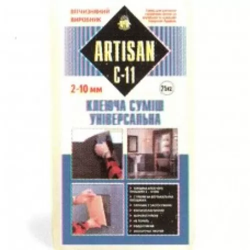 Артисан С11 представляє собою клеєву суміш на цементній основі, модифіковану спеціальними полімерними добавками та мінеральними наповнювачами.